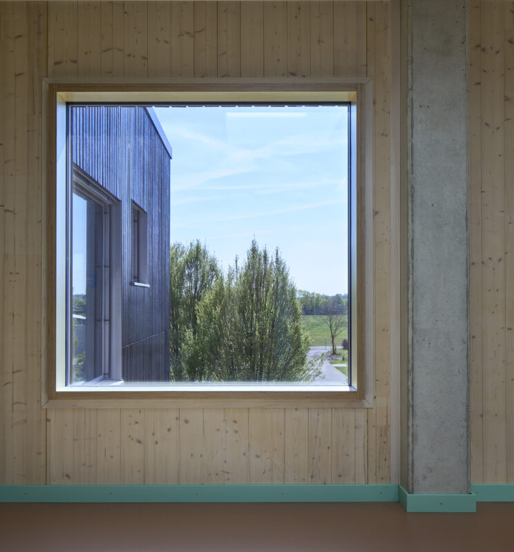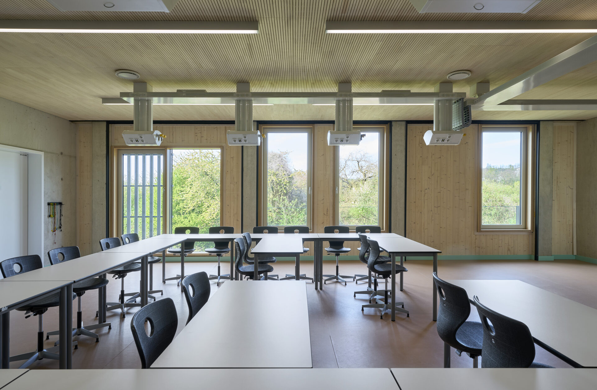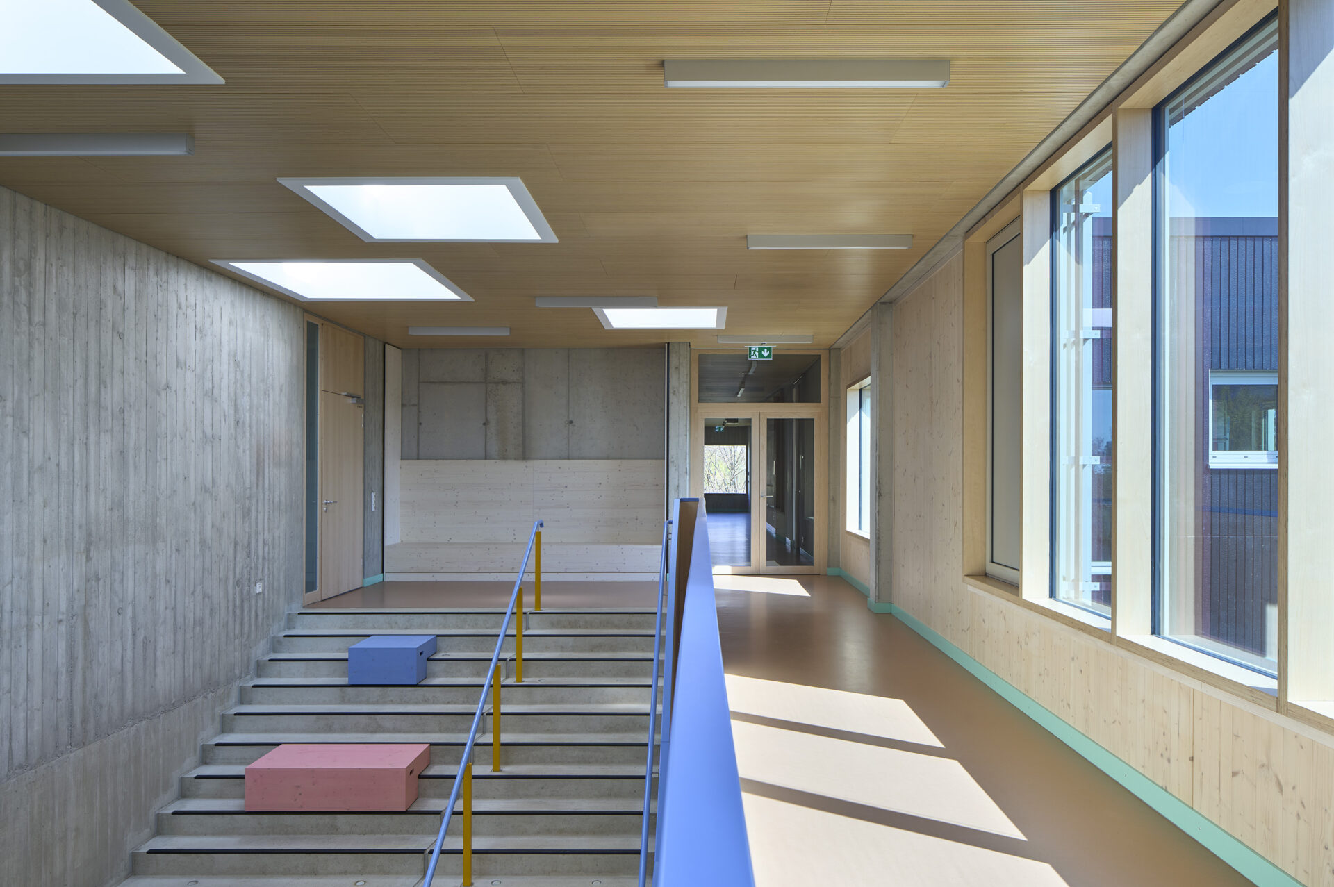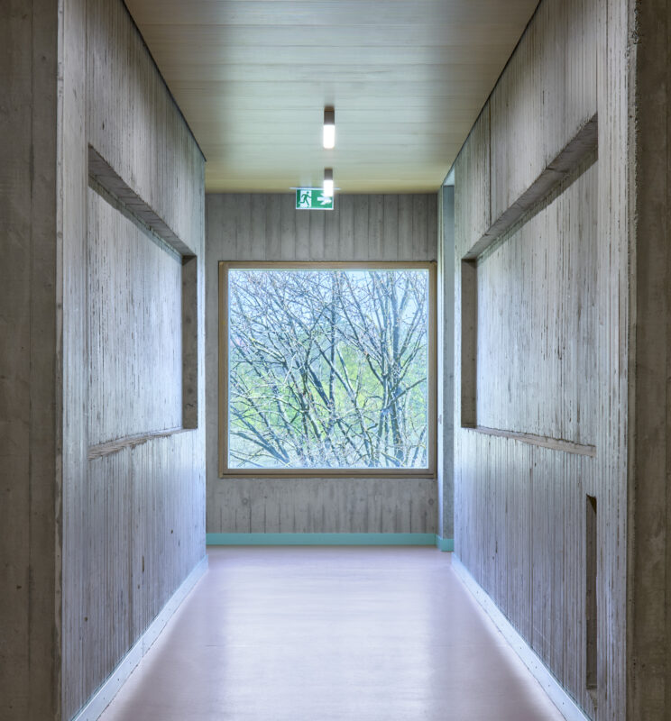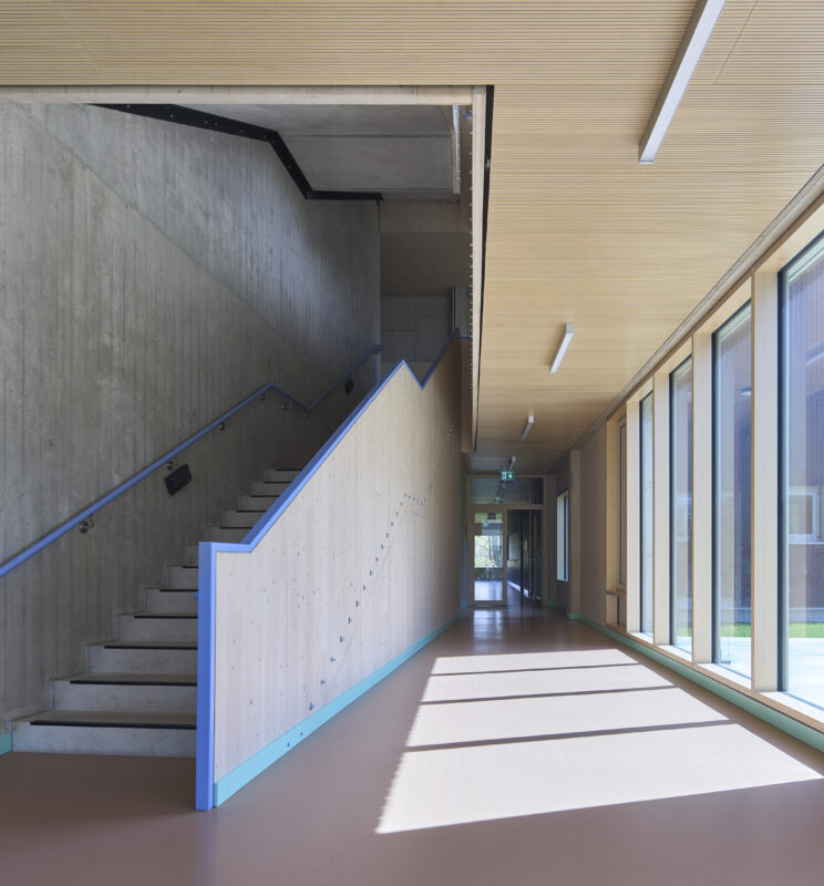Das Albert-Einstein-Gymnasium erhält einen Erweiterungsneubau für die Naturwissenschaften. Der dreigeschossige Stahlbeton-Holz-Hybridbau mit zwei schwarzen Kuben ergänzt den Campus östlich. Neben Fachräumen und Sammlungen entstehen offene Lernlandschaften. Sichtbeton, sichtbares Brettsperrholz und eine karbonisierte Holzfassade folgen dem Prinzip der Materialauthentizität und verbinden Innen- und Außenraum gestalterisch.